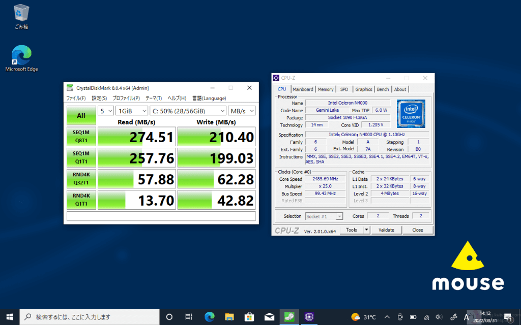 Surface Go 3でもWindows 11 Home (S モード)だったりする中で、mouse E10にはWindows 10 Proがインストールされていました。