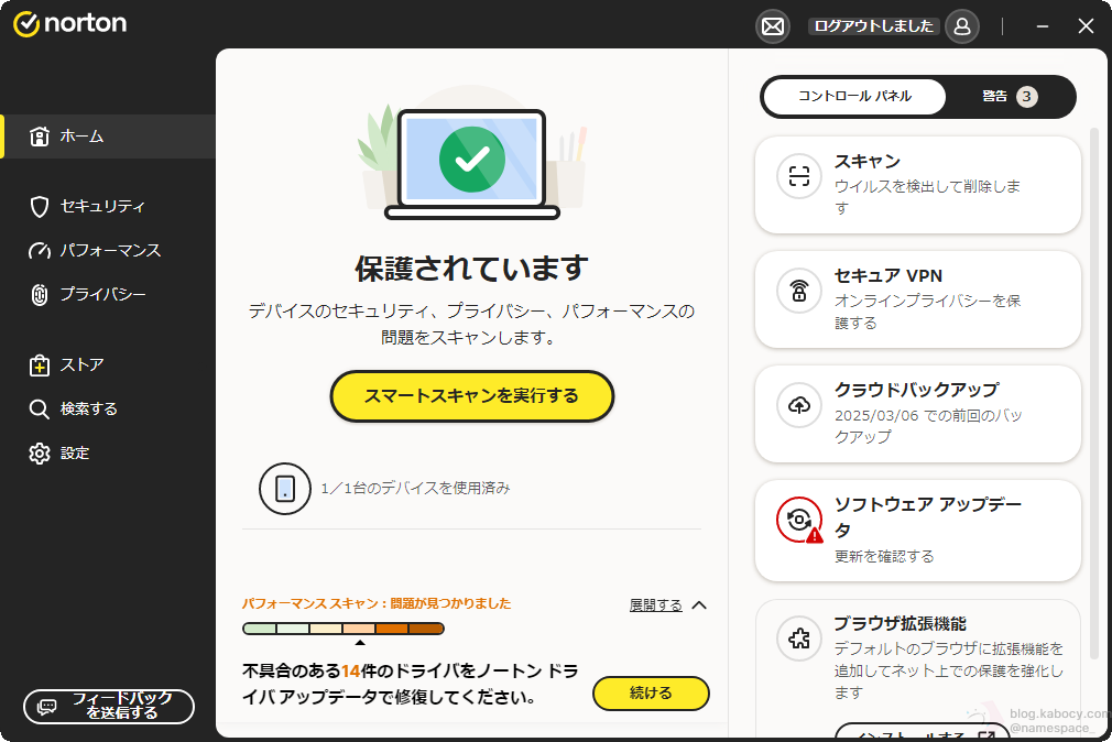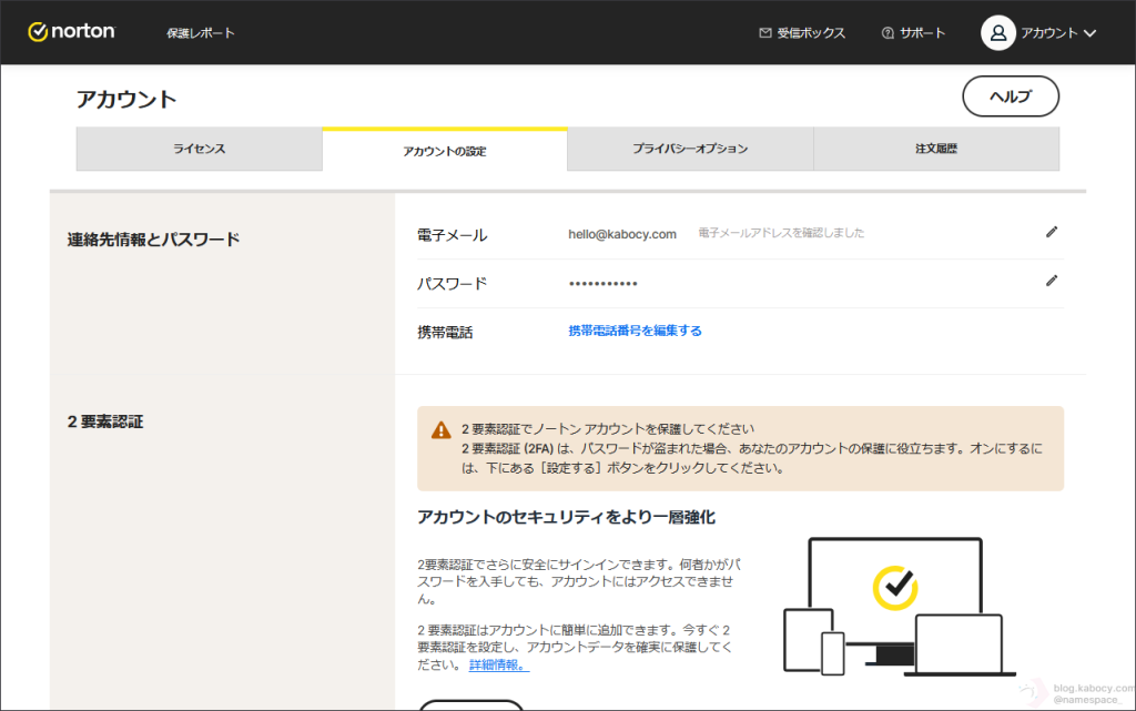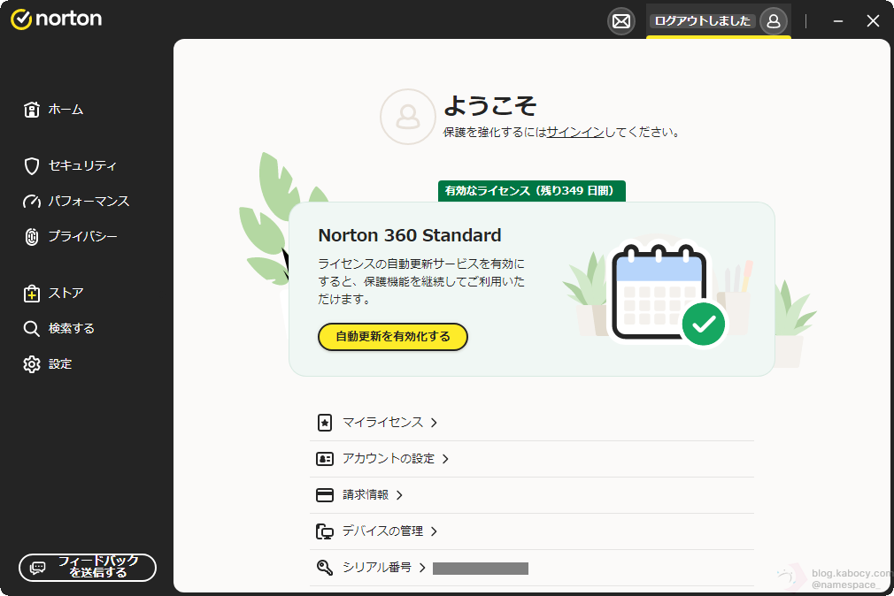 ノートンアカウントにサインインできるようになったので、ノートンの契約について軽く見てみましょう。
